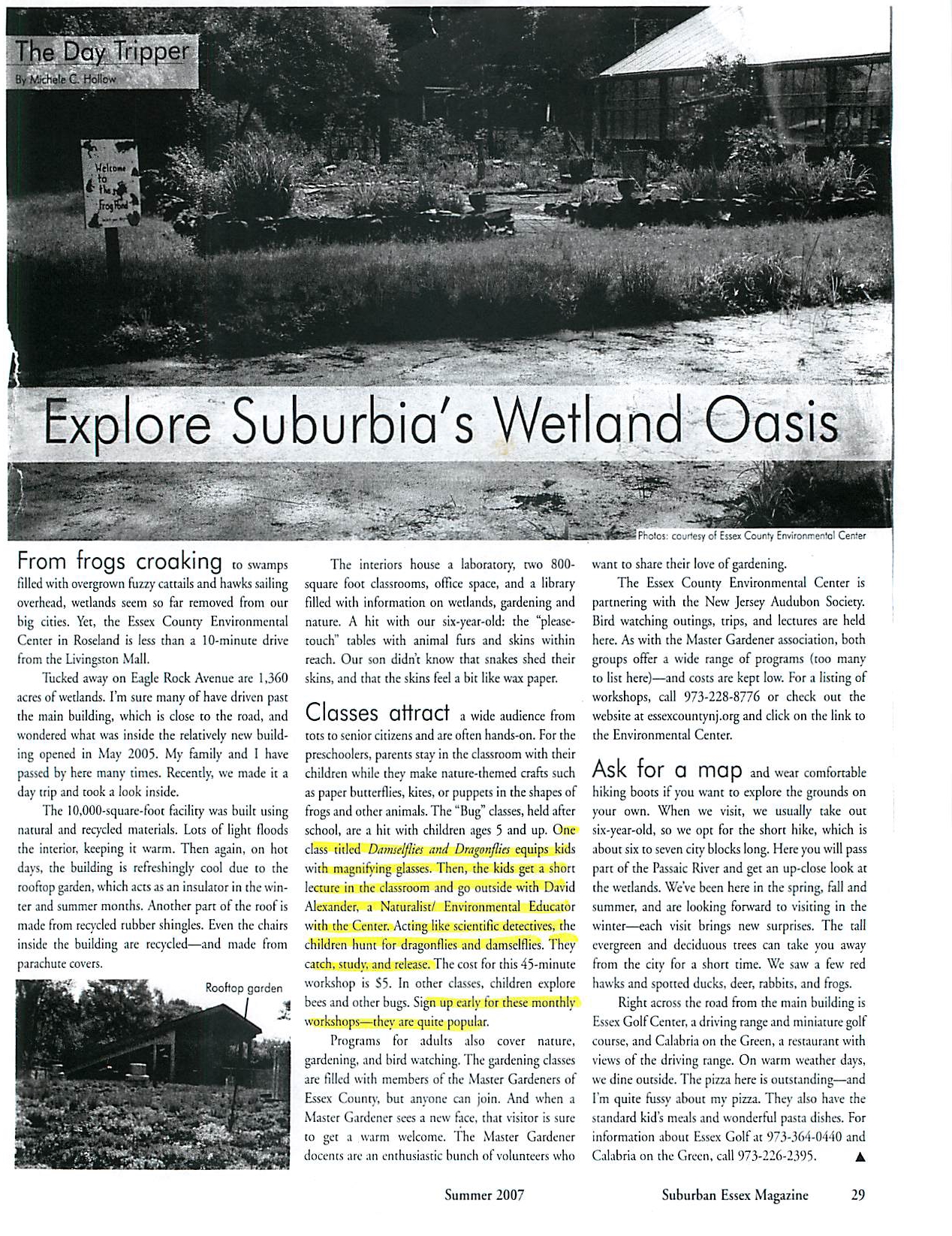 “The kids are given a brief lecture in the classroom before venturing outside with David Alexander, a Naturalist/Environmental Educator with the center. Acting like scientific detectives, the children hunt for dragonflies and damselflies. They catch, study, and release.”