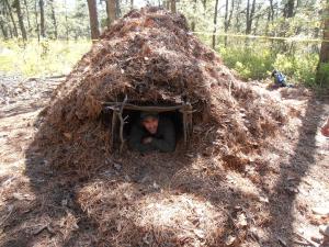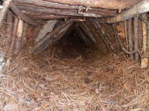 Building Debris Shelters requires one to think like a squirrel. You must build small, compact, tight.  The shelter should fit your body with minimal wiggle room. This shelter was built as part of a demonstration during my time at the Tom Brown – Tracker School Standard Class.