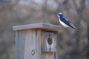 Tree Swallow staking out nest box