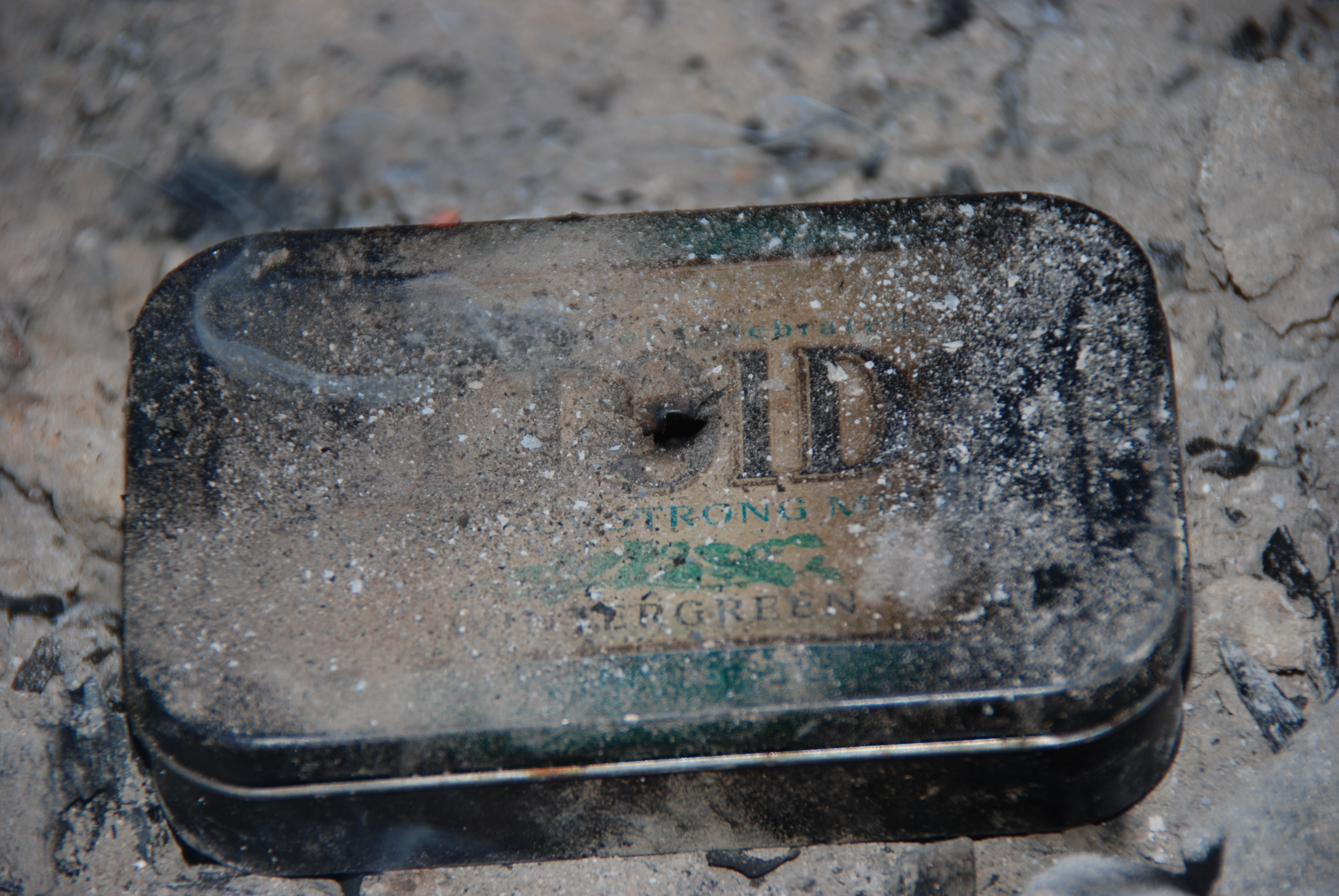 - At this time, pull the container out of the fire and let it sit until cool. Remember do not open the container until cool as the cloth may burn if exposed to oxygen. Without adequate oxygen the cloth becomes charred creating “char cloth”.