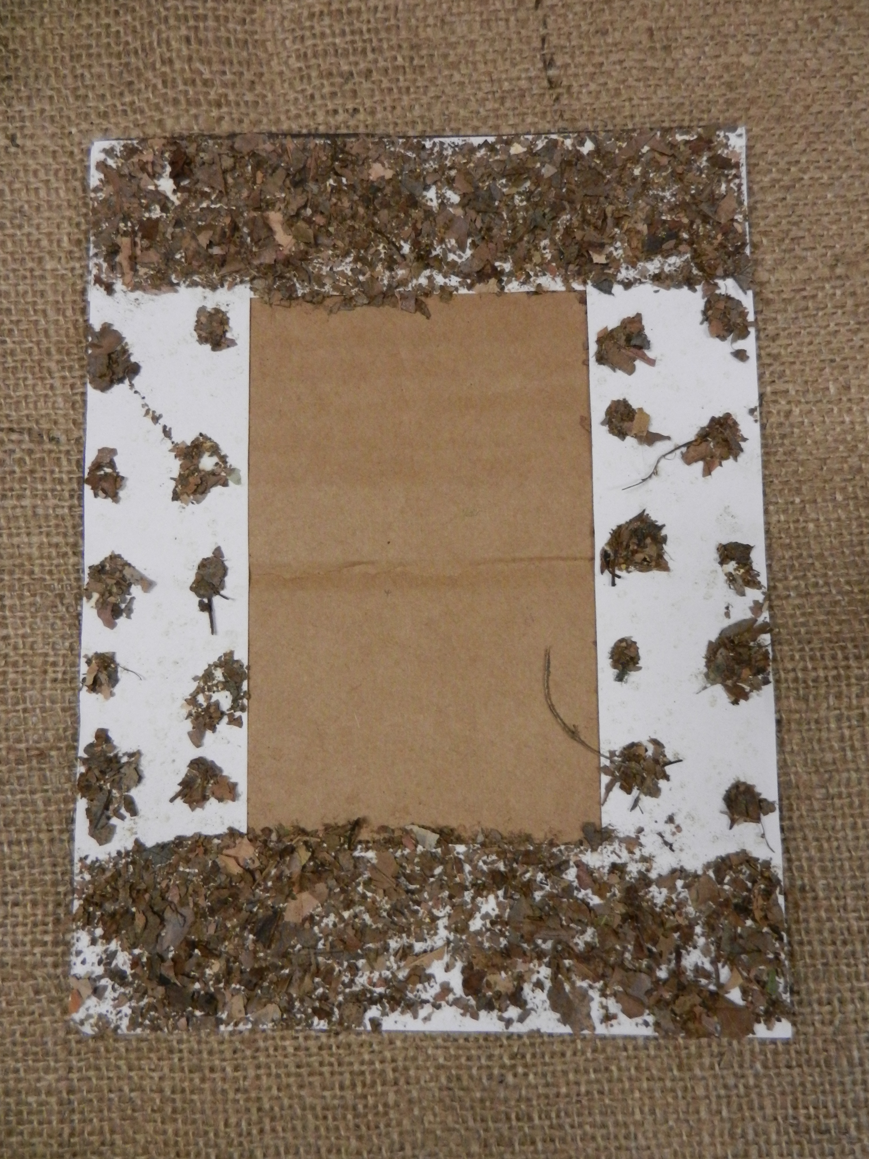 8. Crushed Leaf Picture Frame: Simply crunch up dry leaves in the hands and sprinkle them onto a recycled cardboard picture frame that may or may not be lined with strips of paper scraps. Include a fall foliage family picture in the middle.