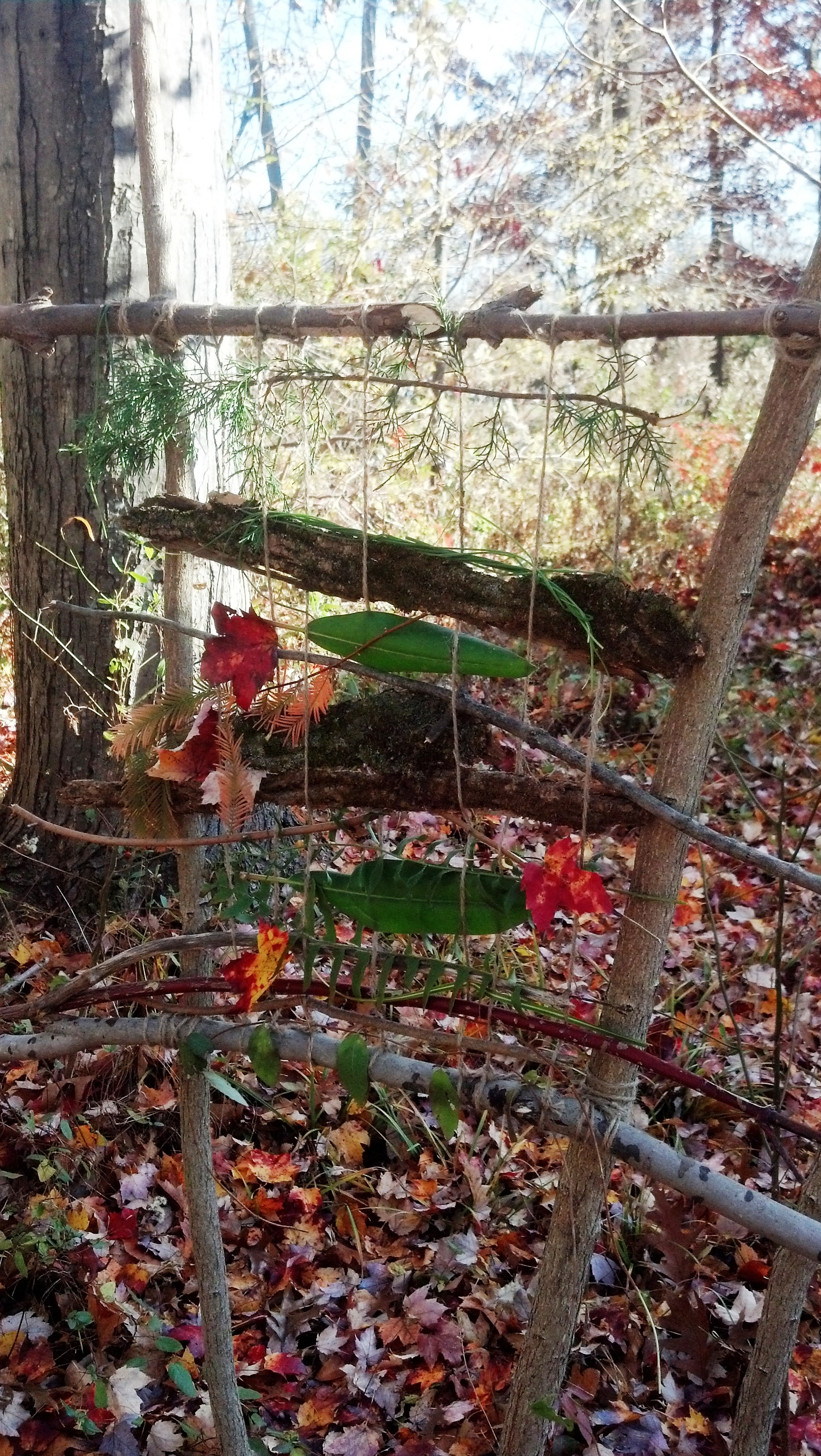 12. Nature Loom: Go out in search of items of interest that can be added to a loom hung between two trees. This can also be done on an individual small scale using a stick in the shape of a Y.