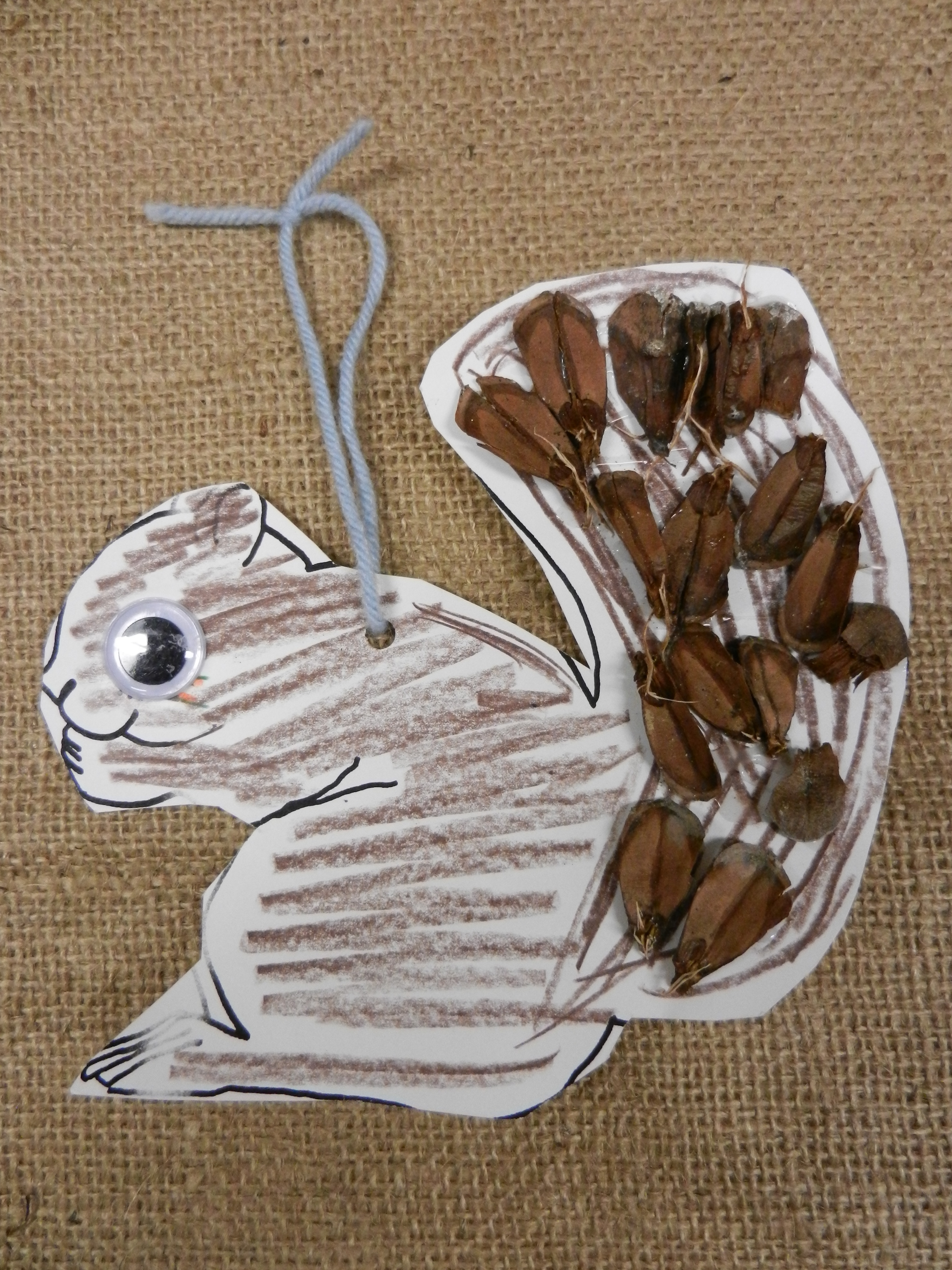 4. Squirrel Tail with Pine-cone: Allow children to collect a pine-cone and remove the individual pieces to be pasted onto a squirrel tail. The tactile action helps to develop fine motor skills while allowing direct interaction with a natural item of interest. You can also try using a sycamore seed ball for fur.