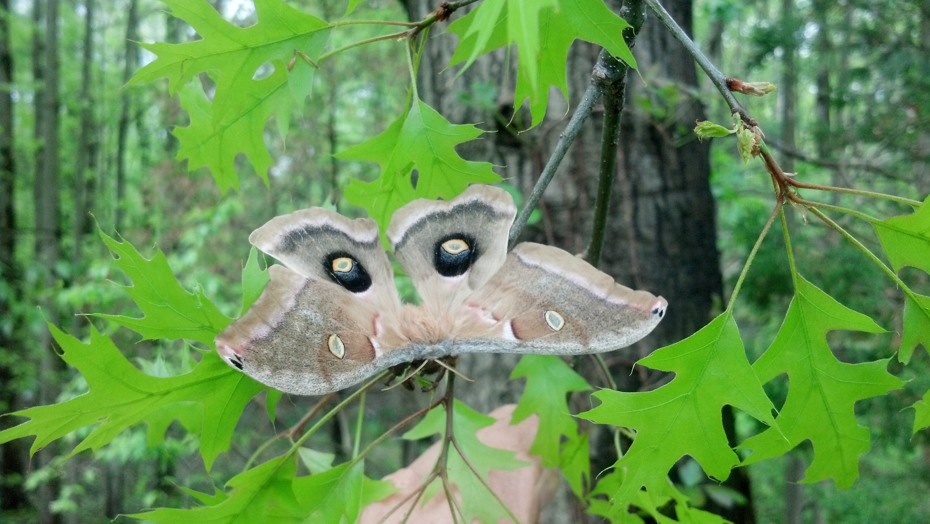 Hatched Polyphemus Moth placed outside on Pin Oak Tree
