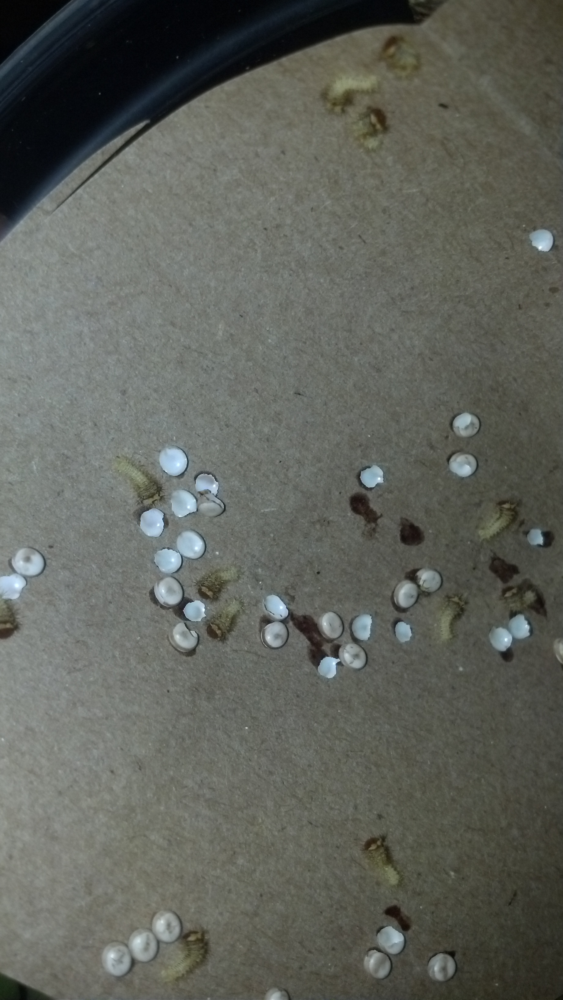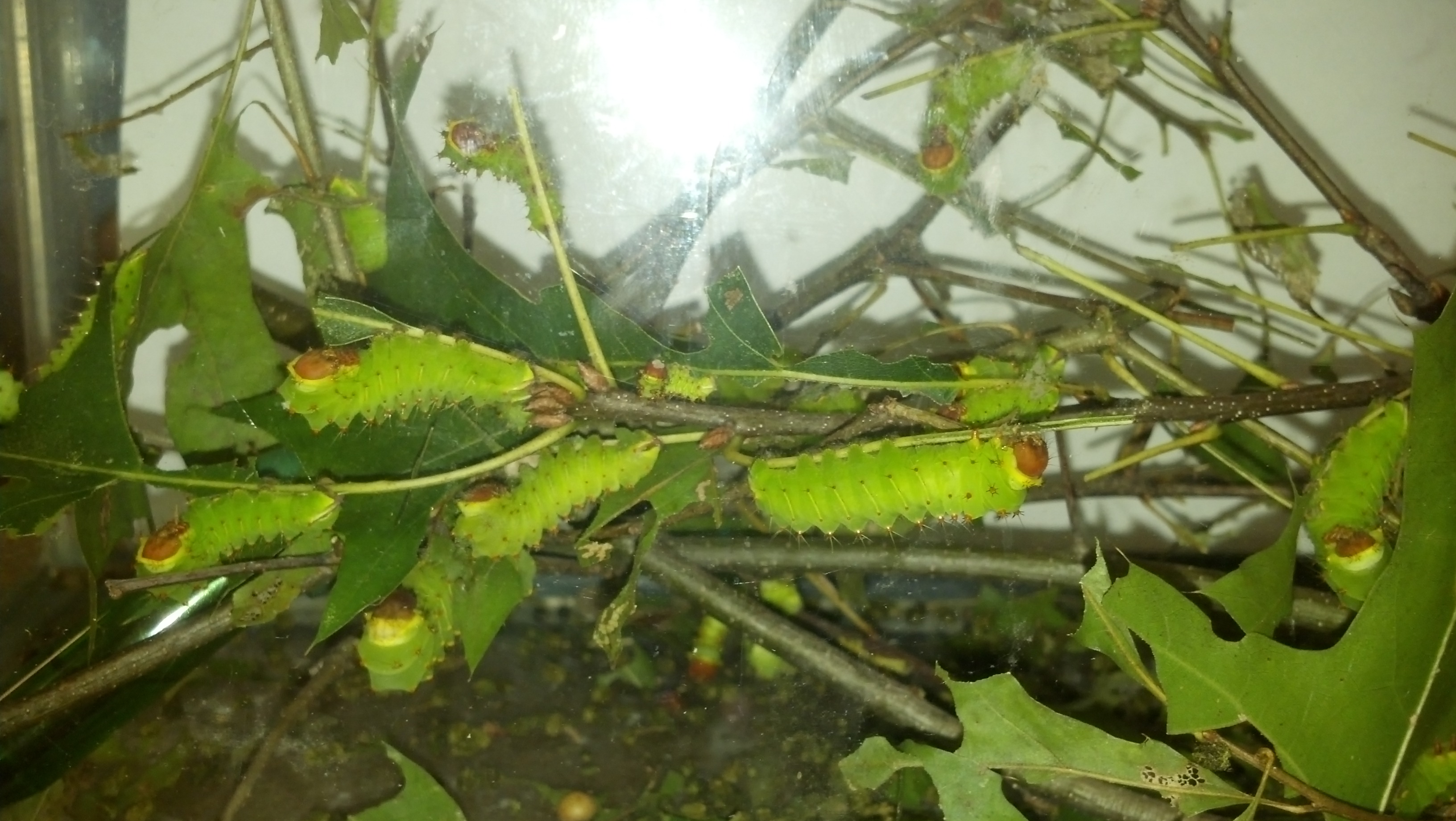 They responded better to the pin oak leaves and began to feed, frass (poop), shed and grow voraciously over the next few weeks.