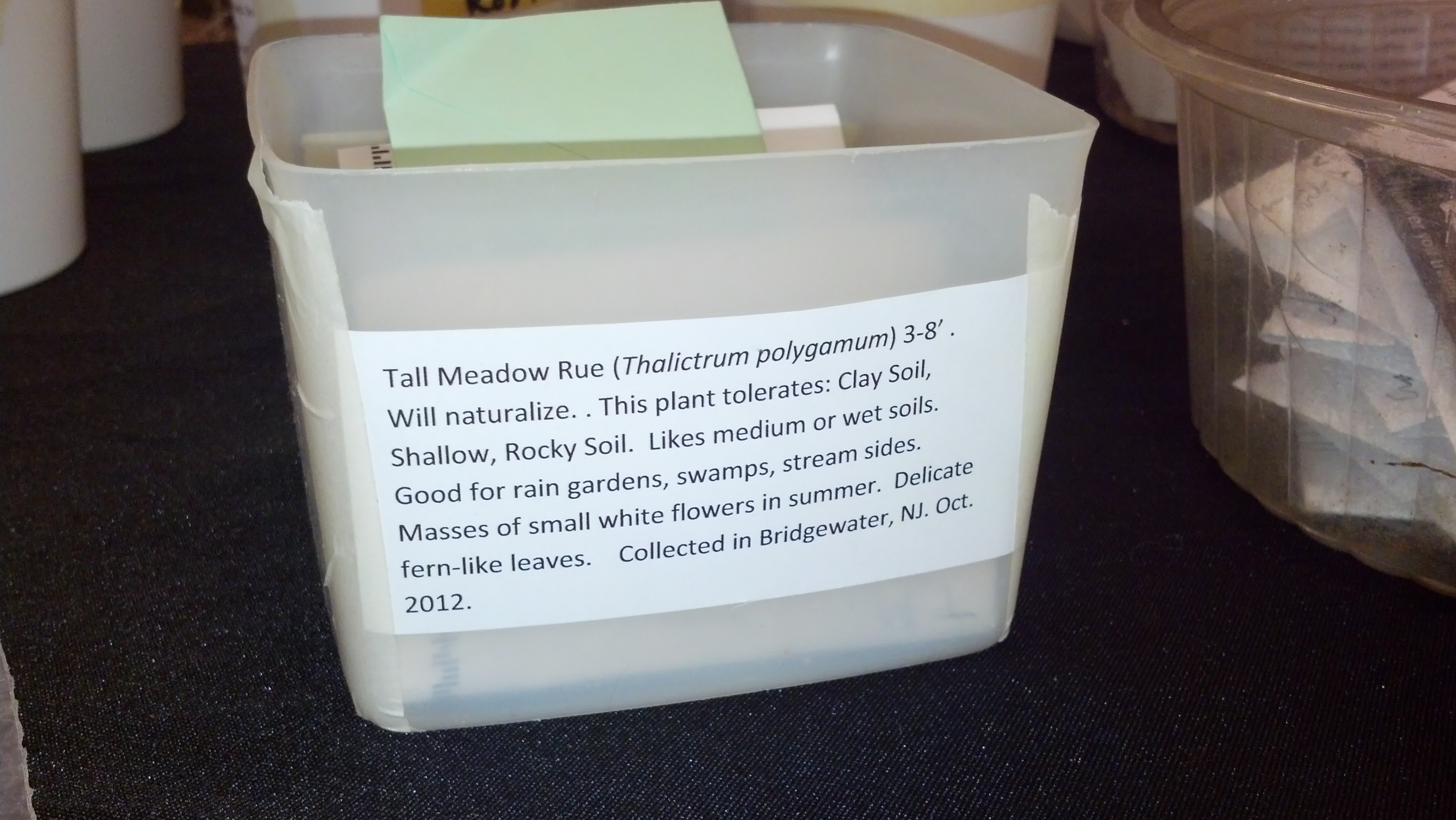 Recently, I attended the Northern Chapter meeting of the Native Plant Society of New Jersey to participate in the Native Plant Seed Exchange. Members collected extra seeds to dry, label and generously share with other plant enthusiasts. Eileen, the chapter chair said, “It was a great way to inexpensively increase the diversity in your garden. Even if you already have some of these plants already it may be helpful to introduce new genes into your habitat.”
