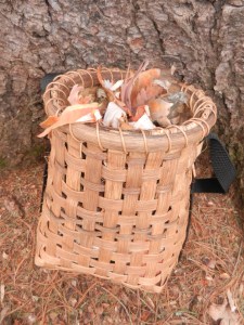 split rattan basket filled with birch bark