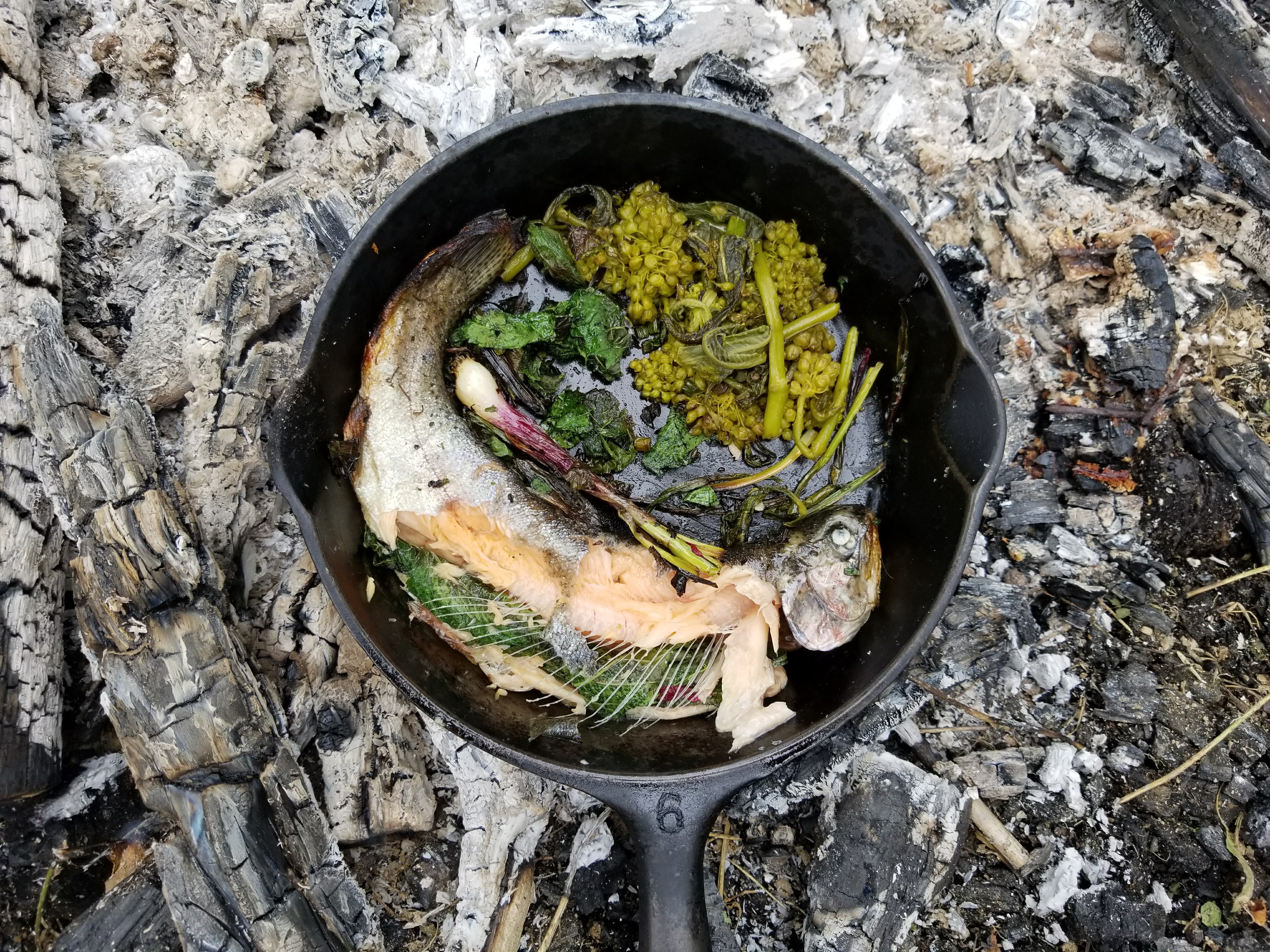 Cooked Trout and Wild Edibles