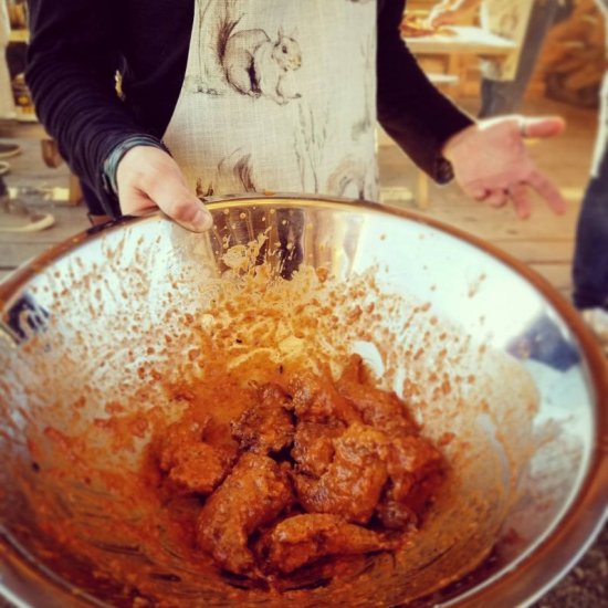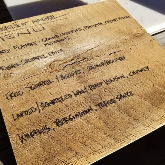 So back to squirrelfest. It was prepared in many ways, one of the best was with venison and a rub of wild edible seasoning of mostly staghorn sumac and spicebush. A reduced hard apple cider made on the property was brushed over during the cooking process and some bacon strips slowly melting fat helped to keep the meat moist.