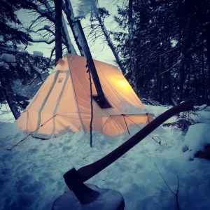 There was a lot of very green golden birch that I split and added after the fire was up to heat. My Dr. Meter wood moisture reader confirmed the waterlogged birch at 32%! We had also brought some local hardwood that read at 10% having known the limitations on firewood within the camp area (dead and down wood only). Again, regarding the efficiency of a short trip, it’s nice being able to spend more time fishing and less on wood processing especially in a well scoured camping area and in winter with a foot of snow covering the ground. Although I still did split and cut a safe supply of firewood to size for the my tent stove.