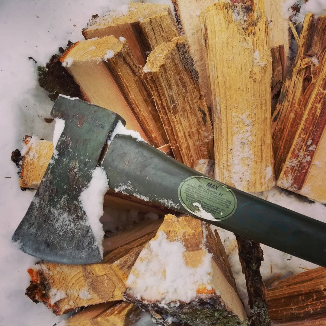 At camp, I got to splitting some wood and getting a fire started. The reach of a full size axe in the winter woods helped make the processing more safe and efficient.