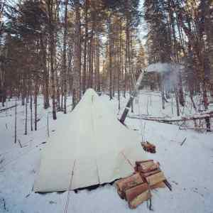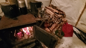 Once the tip-ups were set on the ice, I was able to finish setting up camp and get the stove operational. I’ve learned to pull in a bit of local or Stewarts store seasoned firewood just to kick things off and keep the stove happy but then go out and cut the available dead, down and dry wood. I always process too much out of concern and leave a big pile behind. Better safe than sorry..better warm than cold. One of big benefits to making your own site is the ease of finding good wood as opposed to when camping at designated sites that get picked clean.