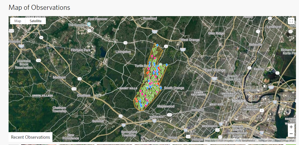 In anticipation of the 2nd South Mountain Reservation Bioblitz I setup a project on iNaturalist to try and capture in photographic evidence as many living species within the park as possible. Anyone with a smart phone would be able to snap a photo and submit their species for inclusion on the app. We encouraged direct participation within the project but anyone using the app within the park added to the data because I added a geofence tus creating a “collection project” to capture any recorded observation within the reservation boundaries.