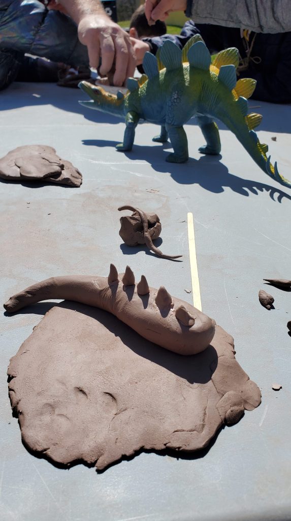 Together with artist Ivan Bratko, we hosted a one-day camp at Riker Hill Park. Campers took a guided geology hike of the Walter Kiddie Dinosaur Quarry with me and after examining Jurassic age dinosaur tracks, we returned to the art studio to create our own small-scale ceramic interpretation of what the dinosaurs may have looked like with artist Ivan Bratko. Kids had a terrific day combining science, art and recreation. Click here for more information on the Dinosaur Tracks