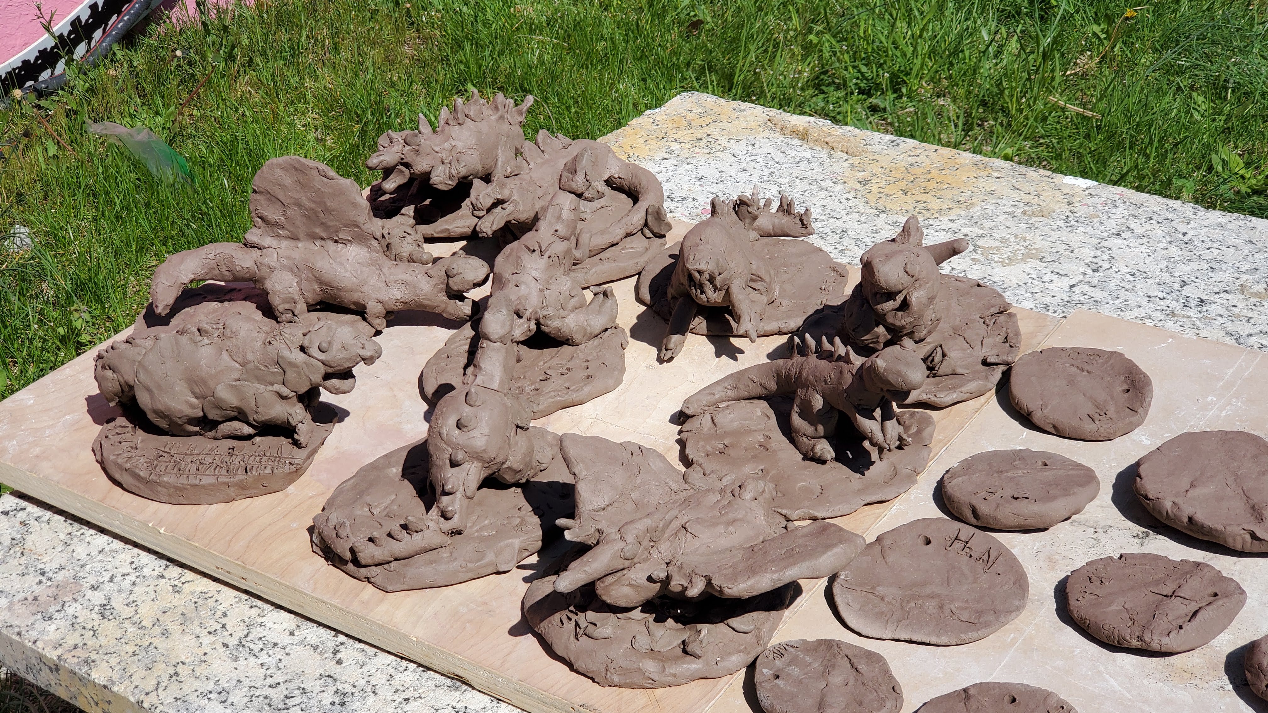 Together with artist Ivan Bratko, we hosted a one-day camp at Riker Hill Park. Campers took a guided geology hike of the Walter Kiddie Dinosaur Quarry with me and after examining Jurassic age dinosaur tracks, we returned to the art studio to create our own small-scale ceramic interpretation of what the dinosaurs may have looked like with artist Ivan Bratko. Kids had a terrific day combining science, art and recreation. Click here for more information on the Dinosaur Tracks