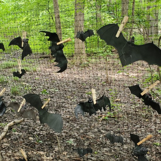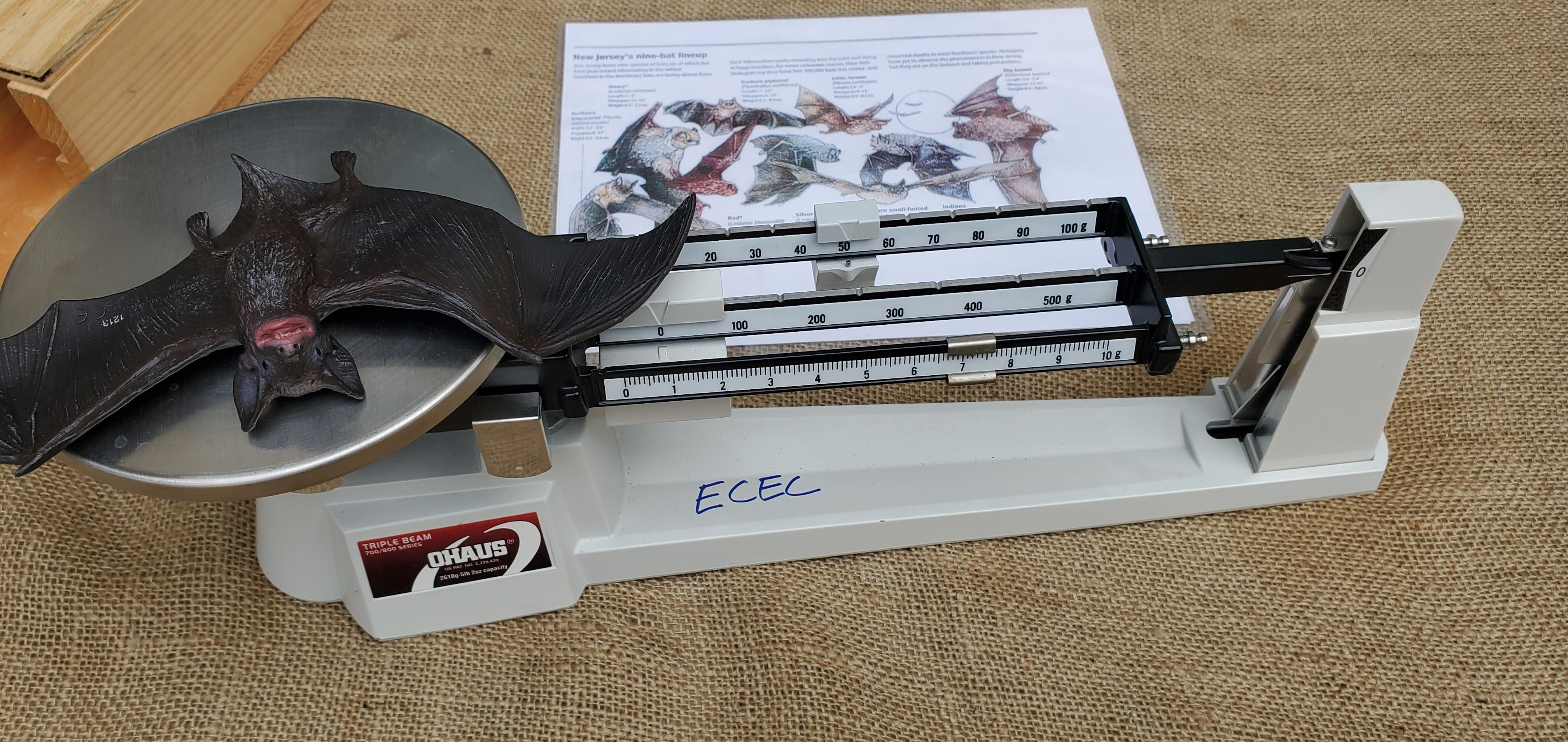 Participants label the anatomy of a bat, play a bat and moth game and discuss bat shelters before they begin the study.  For the simulated study, I hang up a few varied size plastic toy bats in a net for the students to find, weigh and measure. They illustrate the bat and record any identifying features to determine what species it could be. One of the bats will have white paint on it’s nose to represent white nose syndrome. This will help add to our conversation about bat conservation concerns and what we can do to help support their populations.