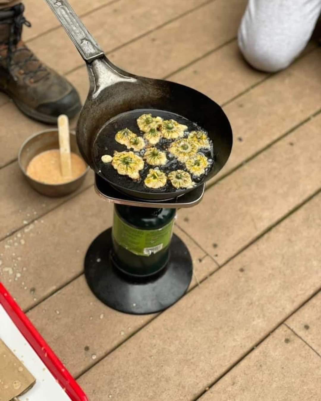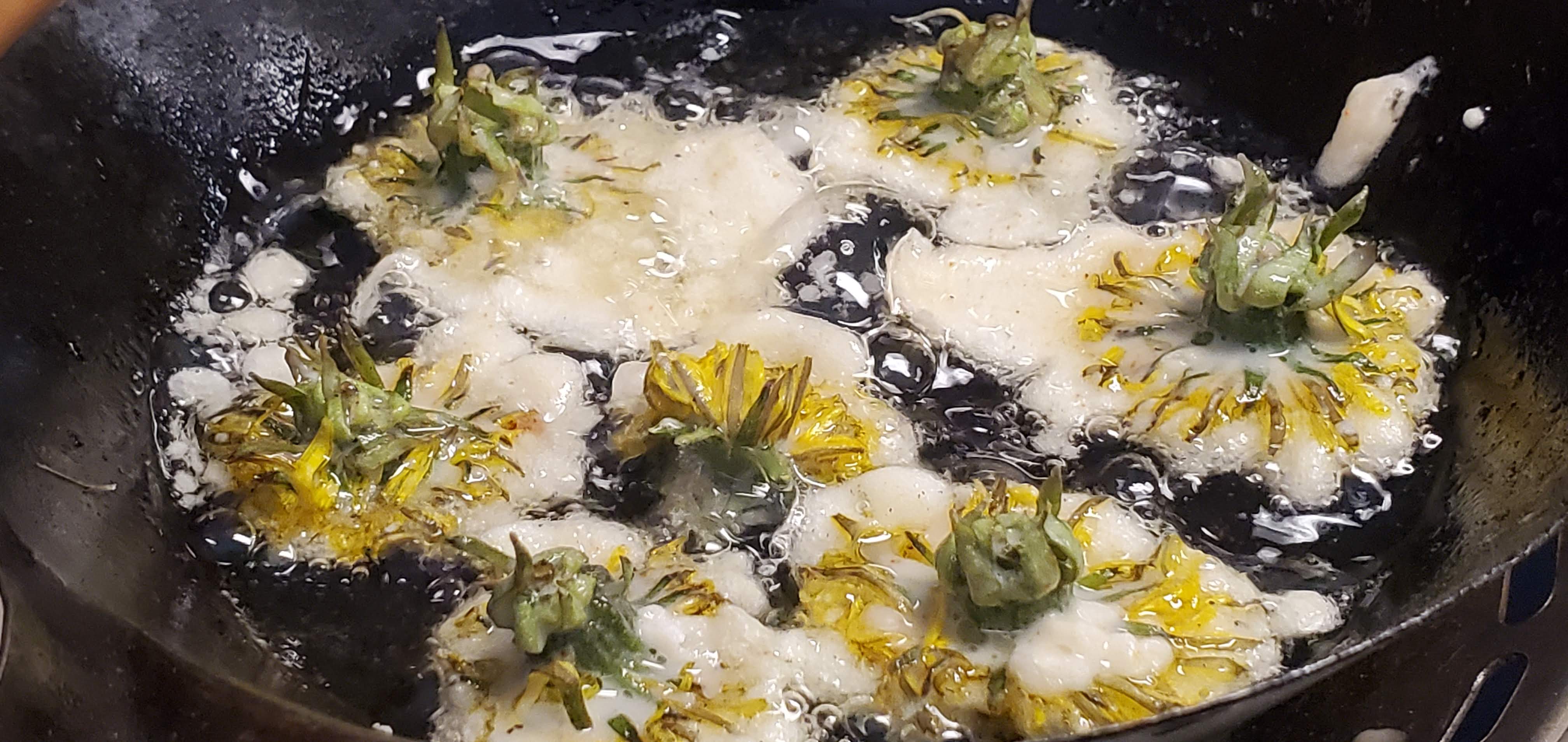 - Drop a handful of dandelion flower heads into the mix to dip and roll.