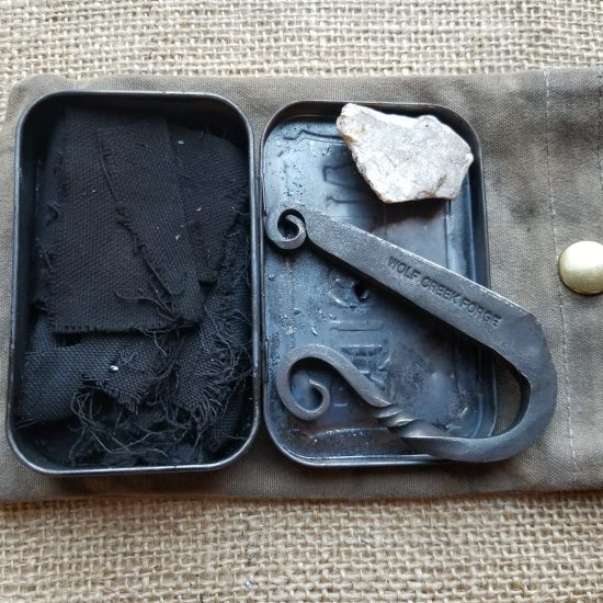 Flint & Steel and Charcloth: Learn to make charcloth and use flint and steel (or quartz) to spark the charcloth and blow it with a tinder bundle into a flame. Bring an Altoids style tin and make your own batch of charcloth.